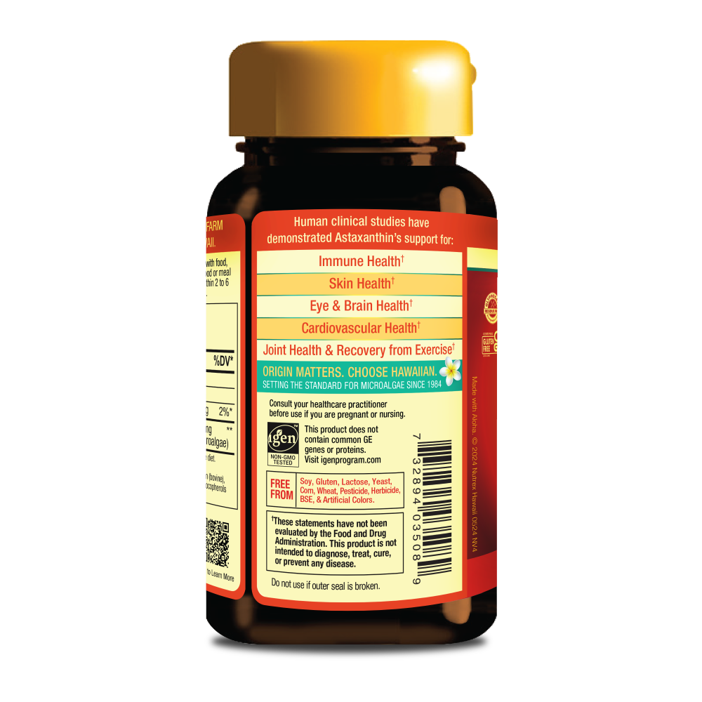 BioAstin Hawaiian Astaxanthin is a red carotenoid that has antioxidant properties and has been clinically validated in human studies as safe and natural.