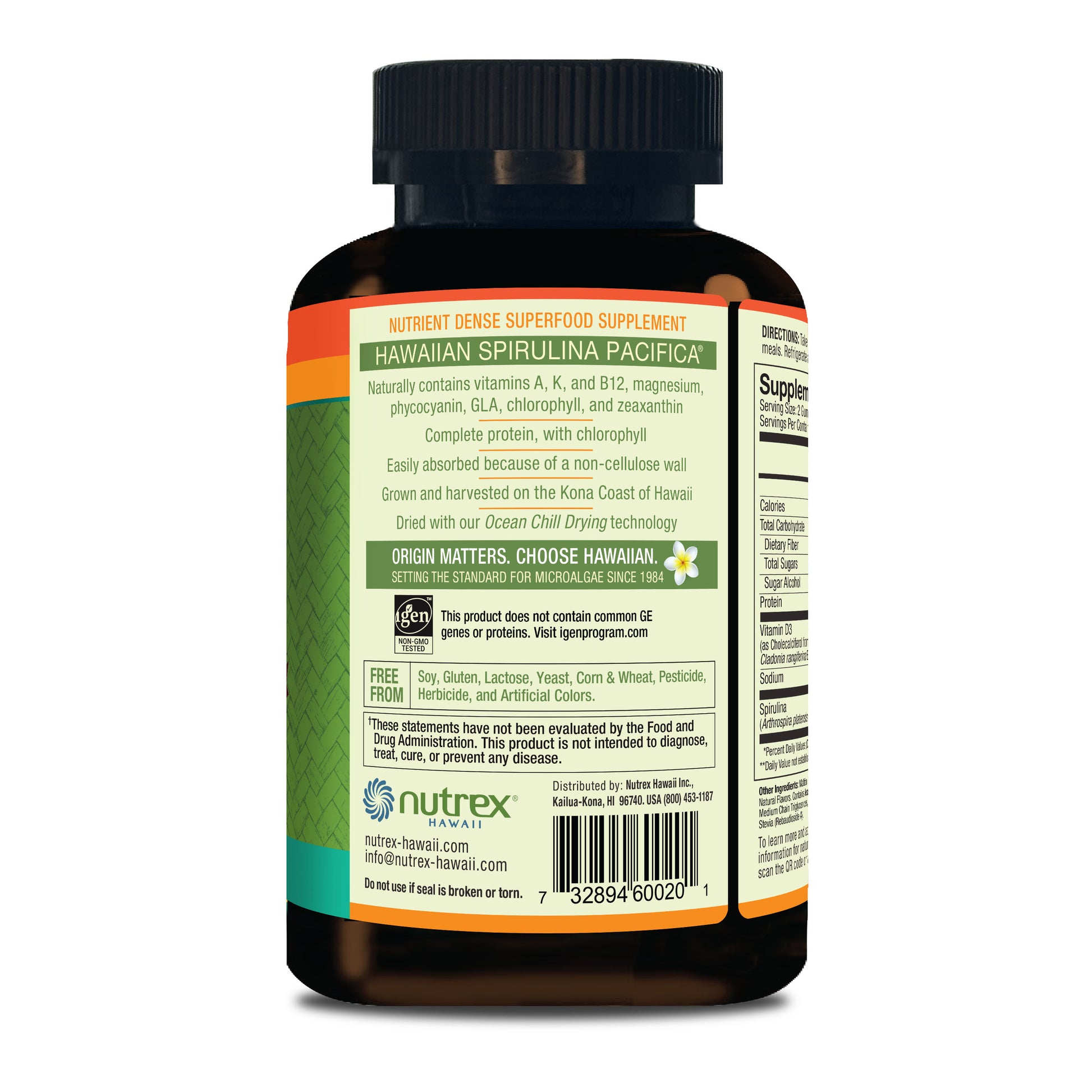 Hawaiian Spirulina Pacifica is different from other brands of spirulina for a variety of reasons. It is the only spirulina cultivated off the coast of Kona, Hawaii; an area that receives more coastal sunlight than anywhere in the United States. It is grown in open ponds using 100% fresh potable water and ultra-pure, deep ocean water. Nutrex also utilizes a patented drying system which is designed to eliminate the oxidation of carotenes, enzymes and fatty acids that occurs in standard dryers.